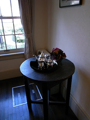 靠右走,發現NO.4「Ehrismann邸」。Ehrismann邸位於元町公園內,附設咖啡廳,累了可休息。不知道是不是因為我很愛吃,每進去一棟西洋館,就習慣性地先注意「餐桌」,總覺得那最貼近生活本質。就像這兒,餐桌上站著厚厚的阿菇!多麼可愛!