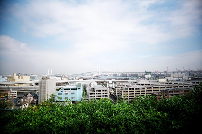 先到「港之丘公園」,公園裡綠意盎然,藏著一座斷垣殘璧,矗立一座小風車;再繼續往上走,則抵達觀景平台,可以眺望橫濱港口。
