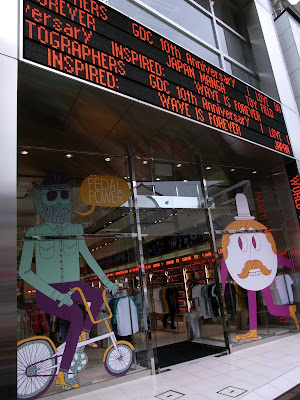 先在同潤館3F灑了錢買一件阿智T,以及一個阿智小水杯(就說今天是阿智日...),稍微走了一下表參道hills,好吧,今天不但是阿智日,也是安藤大叔日。從青山不知不覺就走到表參道,又從表參道不知不覺走到原宿,櫥窗街景風格不斷變化,但灰撲撲的天氣倒是挺從一而終。