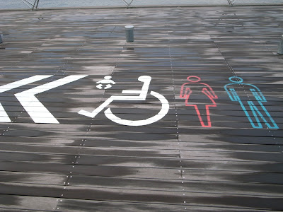 賴在大棧橋上,時間悠悠而過。大棧橋很妙,除了設計感強烈之外,細節也很幽默。我就好愛她們的洗手間標示啊!躺在地上都可以偽裝成命案現場。